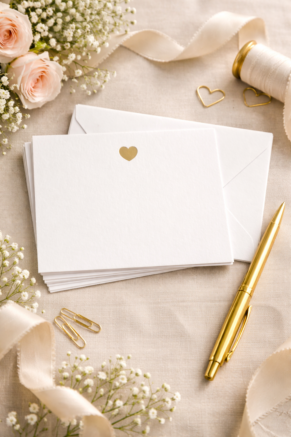 Whether you’re writing love notes, thank you messages, or thoughtful greetings, our gold foil heart note cards offer classic simplicity with a refined touch of detail. Perfect for weddings, Valentine’s Day, everyday correspondence, and thoughtful gifting.
